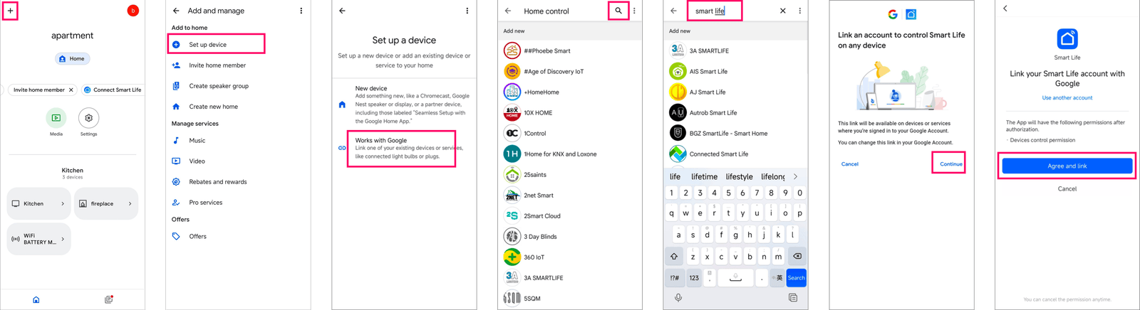 4. Select the Smart Life app from the results and tap Continue. The Google Home app will open Smart Life for linking. Tap Agree and link and wait for the process to complete. Your Smart Life app is now linked with Google Assistant.